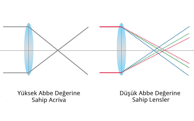 - Yüksek ABBE değeri (58) Kromatik Aberasyon Kontrolu